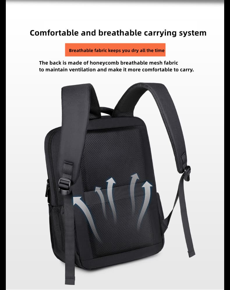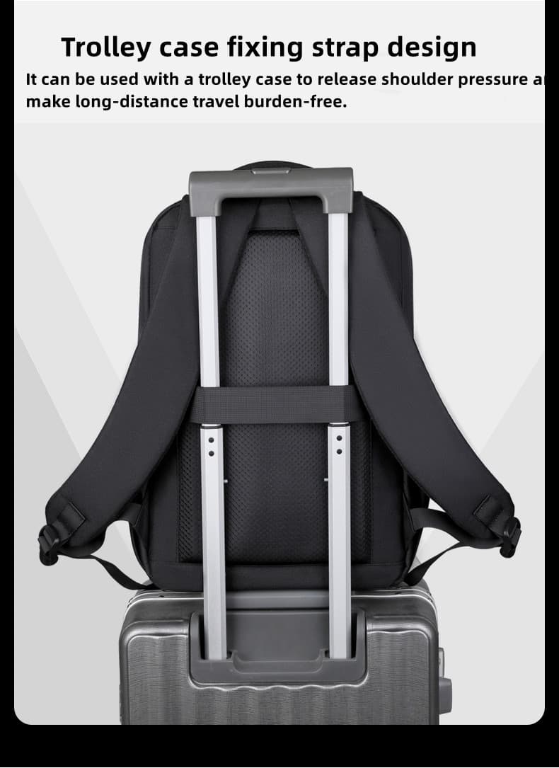 This 17-inch laptop backpack, crafted from lightweight fabric, offers ease and comfort for your travels. Its multiple compartments and pockets ensure organized storage and quick access to your items. The breathable and ergonomic back support system contours to your back, providing comfortable carry even for extended periods. Plus, a built-in trolley strap allows for convenient attachment to luggage, making it the perfect choice for business trips or vacations.