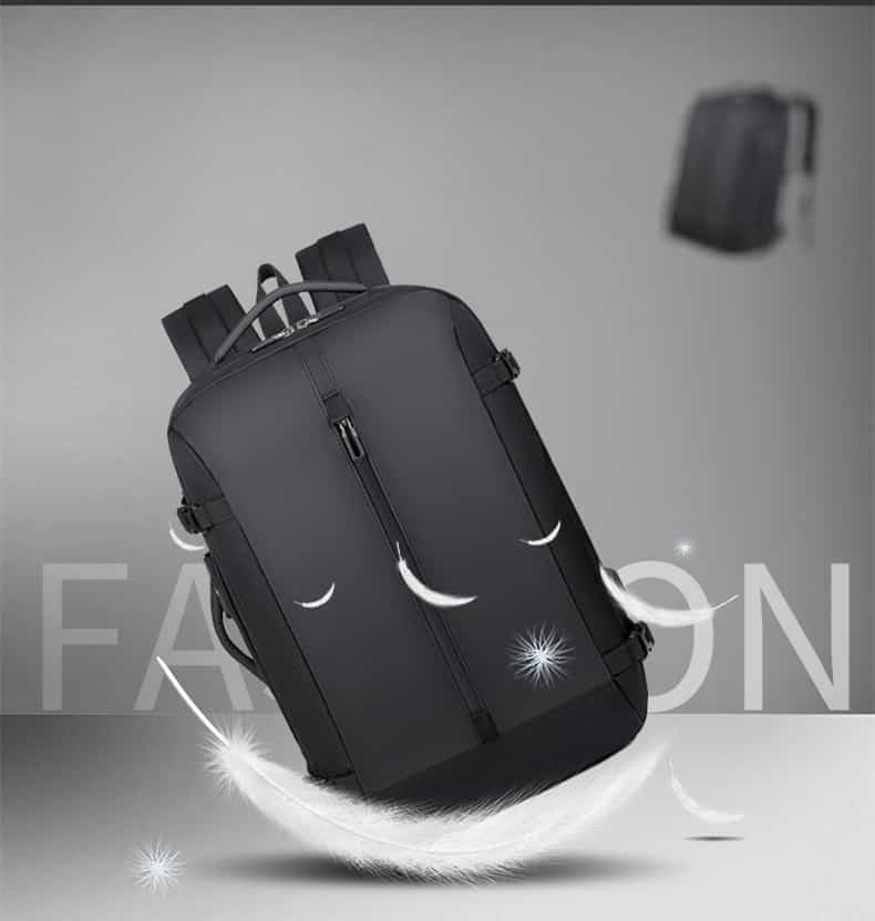 This backpack is made of waterproof fabric, allowing you to cope with rainy days and enjoy a worry-free time efficiently. The multi-compartment design keeps items sorted and organized, making it easier to find things. The backpack has a USB port to charge electronic devices anytime and ensure smooth communication. A special trolley fixing strap on the back can be used with trolley cases to free your hands more quickly. The backpack supports capacity expansion to meet your needs and make traveling more convenient. At the same time, the lightweight design and lightweight makes your journey more relaxed and enjoyable.