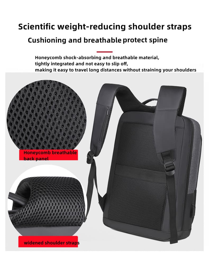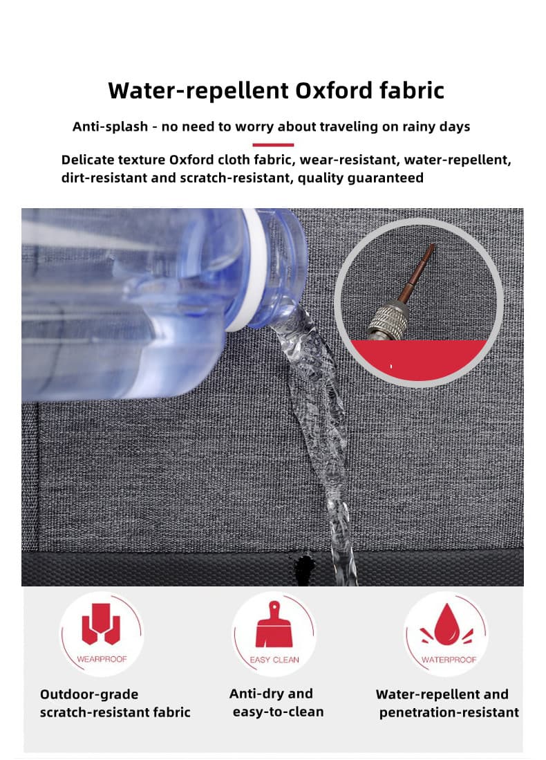 This backpack is made of high-quality, water-repellent Oxford fabric, which is wear-resistant, water-repellent, dirt-resistant, and scratch-resistant. Available in four colors: gray, black, blue, and red, it can accommodate a 15.6-inch computer.