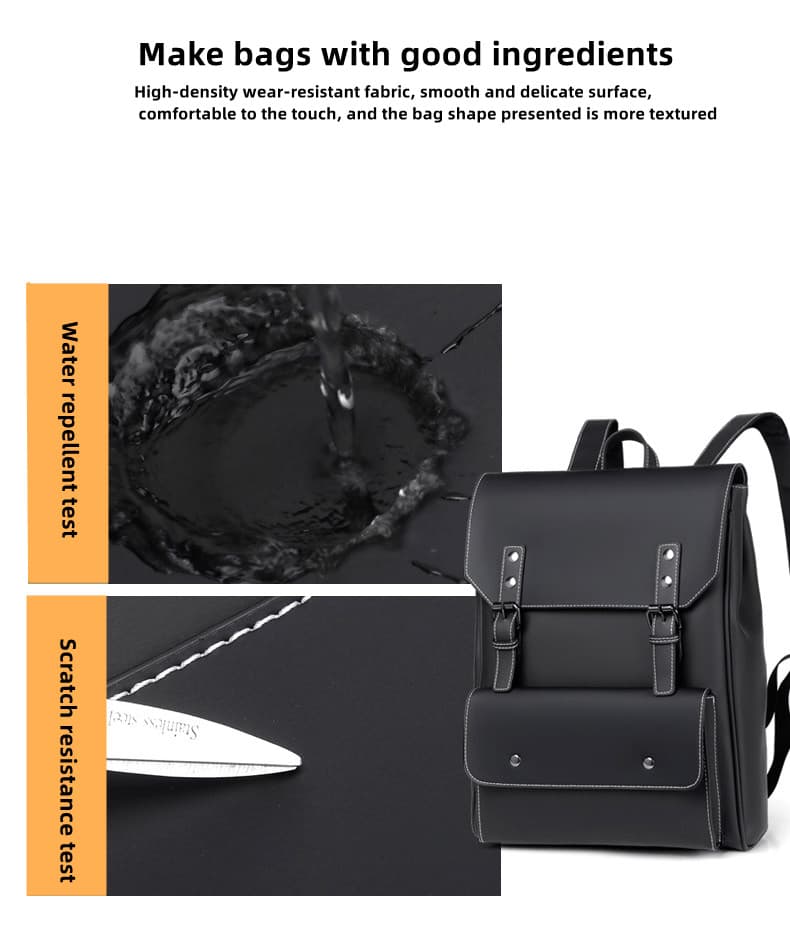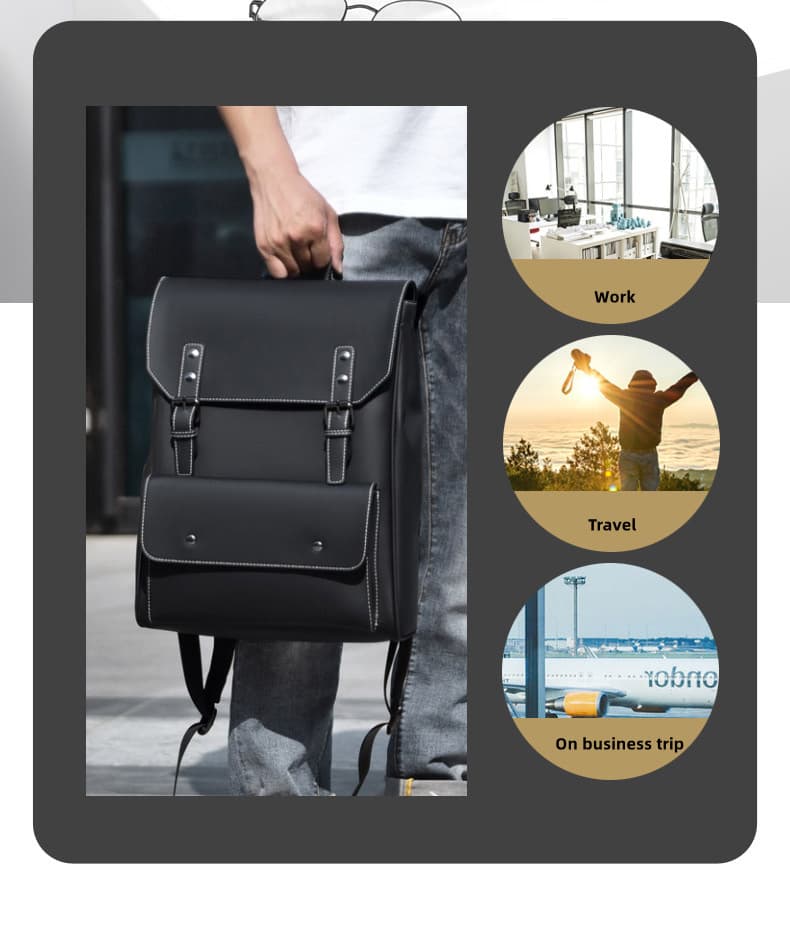 This leather laptop backpack is made of soft PU leather, which is waterproof. Even if you encounter light rain on the road, don’t worry; the waterproof performance of this bag can provide your laptop with a dry environment for a short time.
