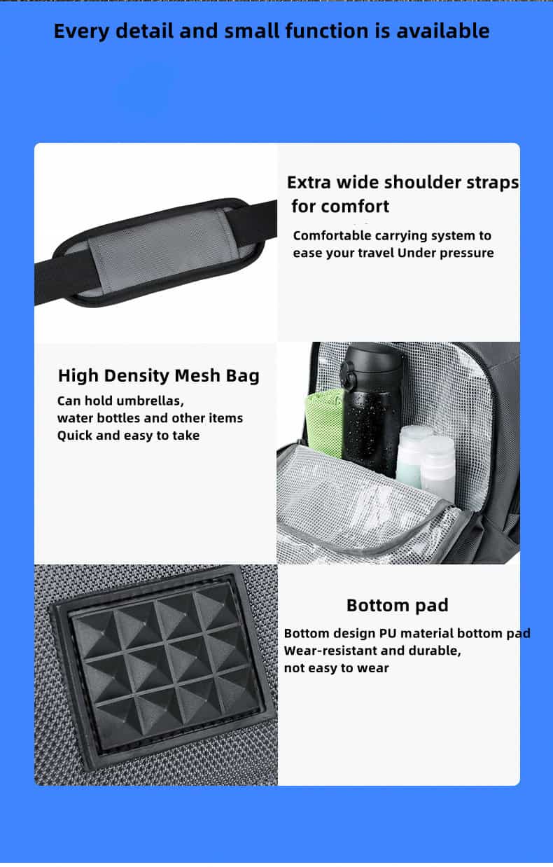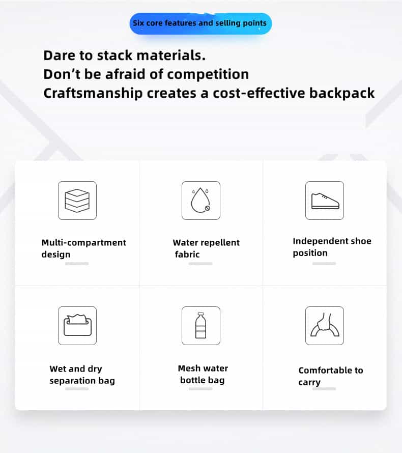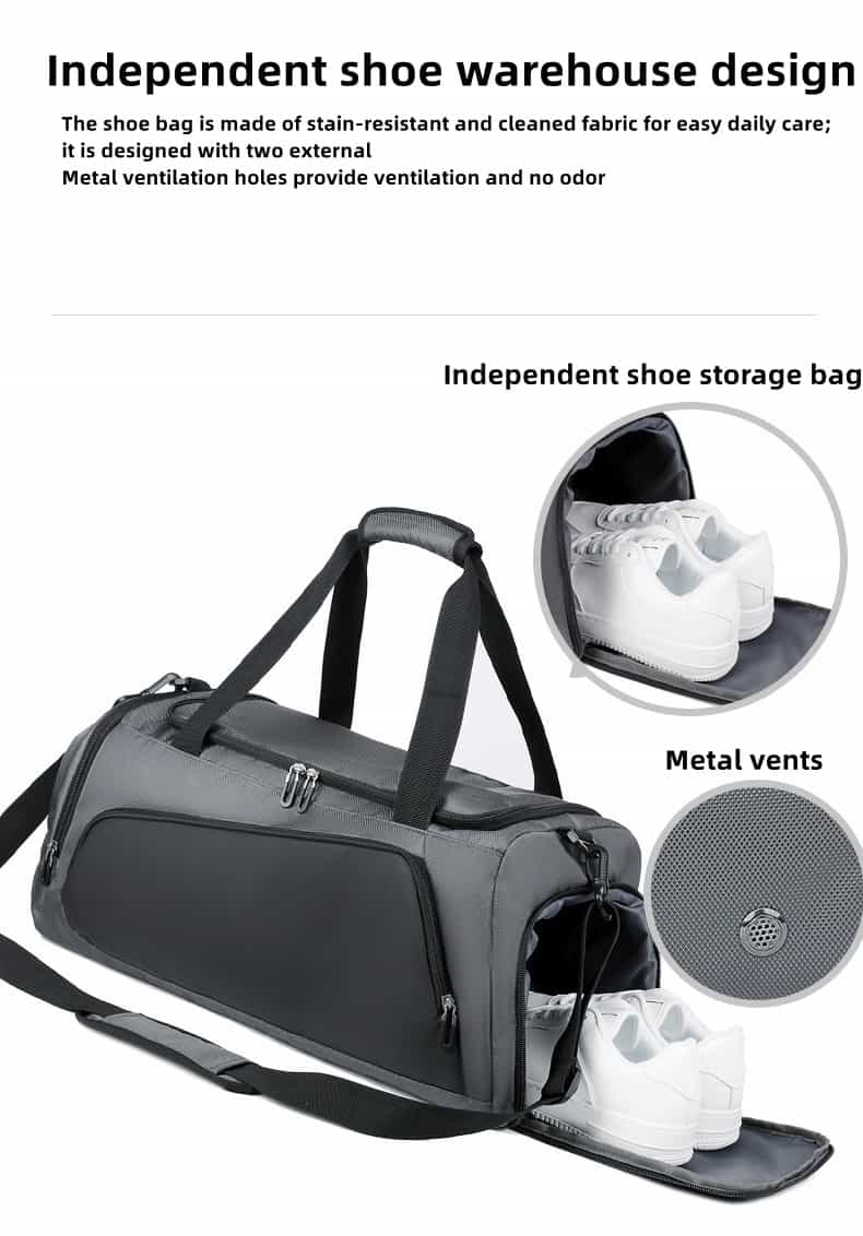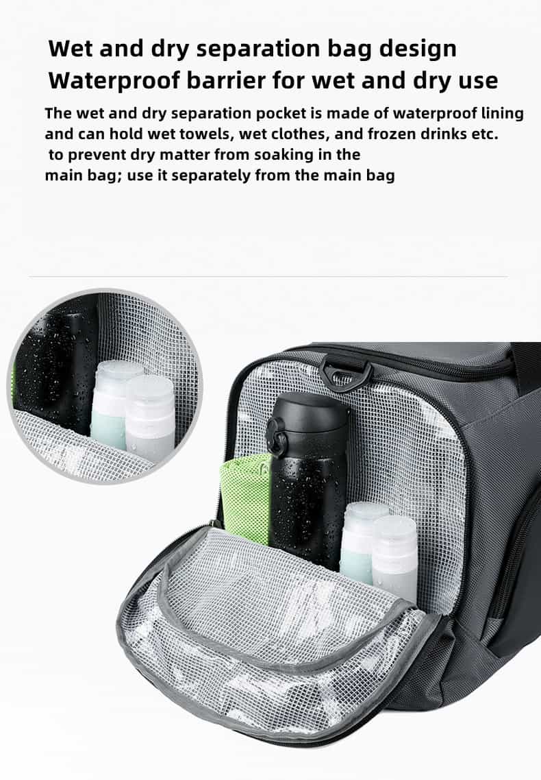 This duffel bag is made of water-repellent oxford cloth, and the outer fabric of the backpack is made of a new generation of oxford water-repellent fabric; you can travel with peace of mind even on rainy days. Its clever design is equipped with a wet and dry separation bag and an independent shoe compartment to keep your Things are kept neat and organized. What’s more worth mentioning is that this bag supports a variety of carrying methods such as shoulder, cross-body and hand carry, easily adapting to the needs of different occasions.