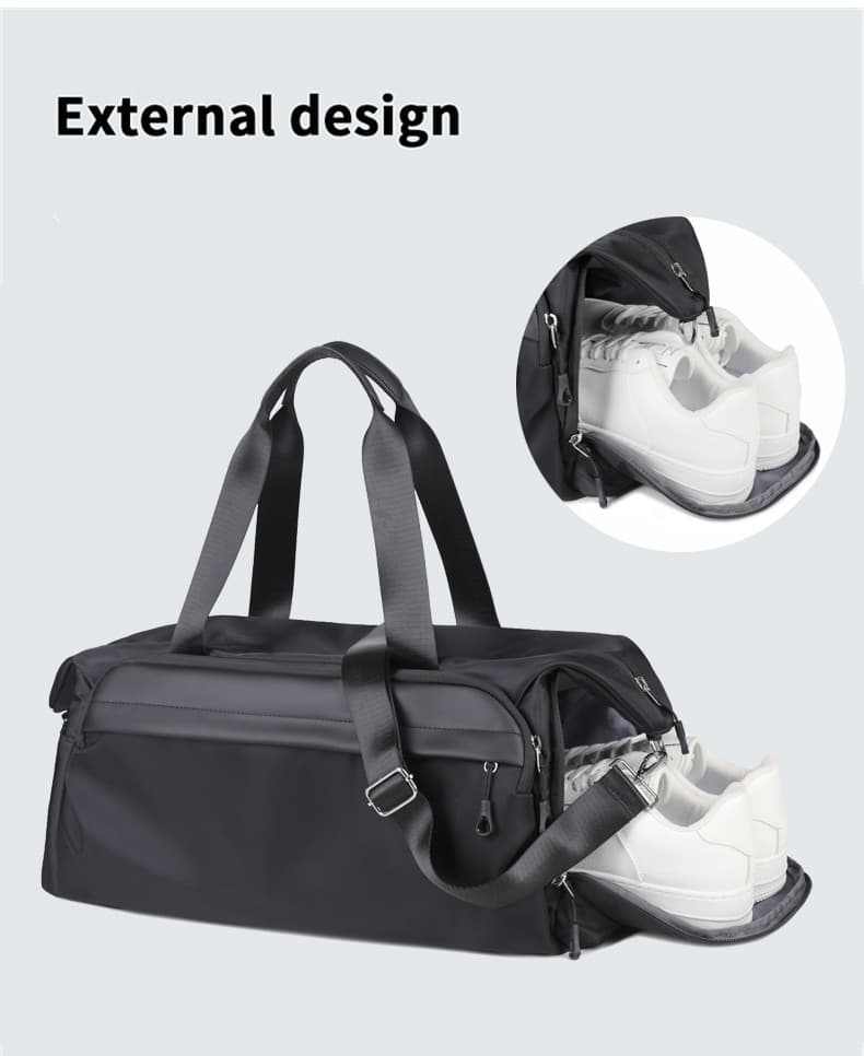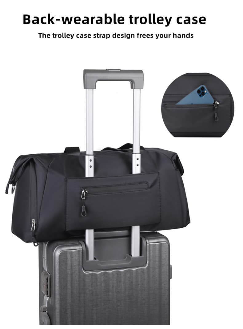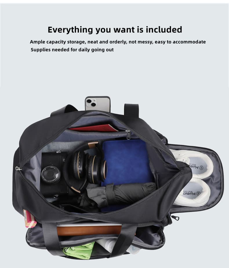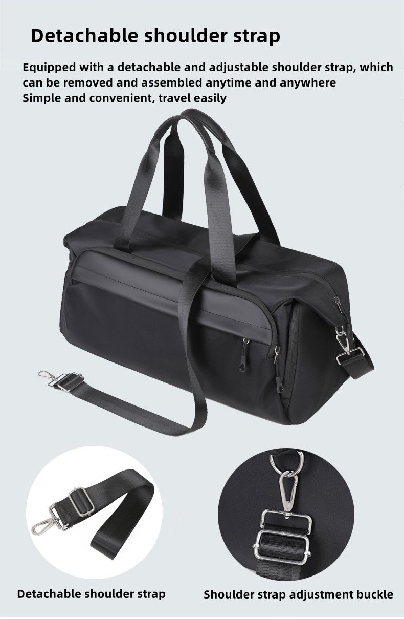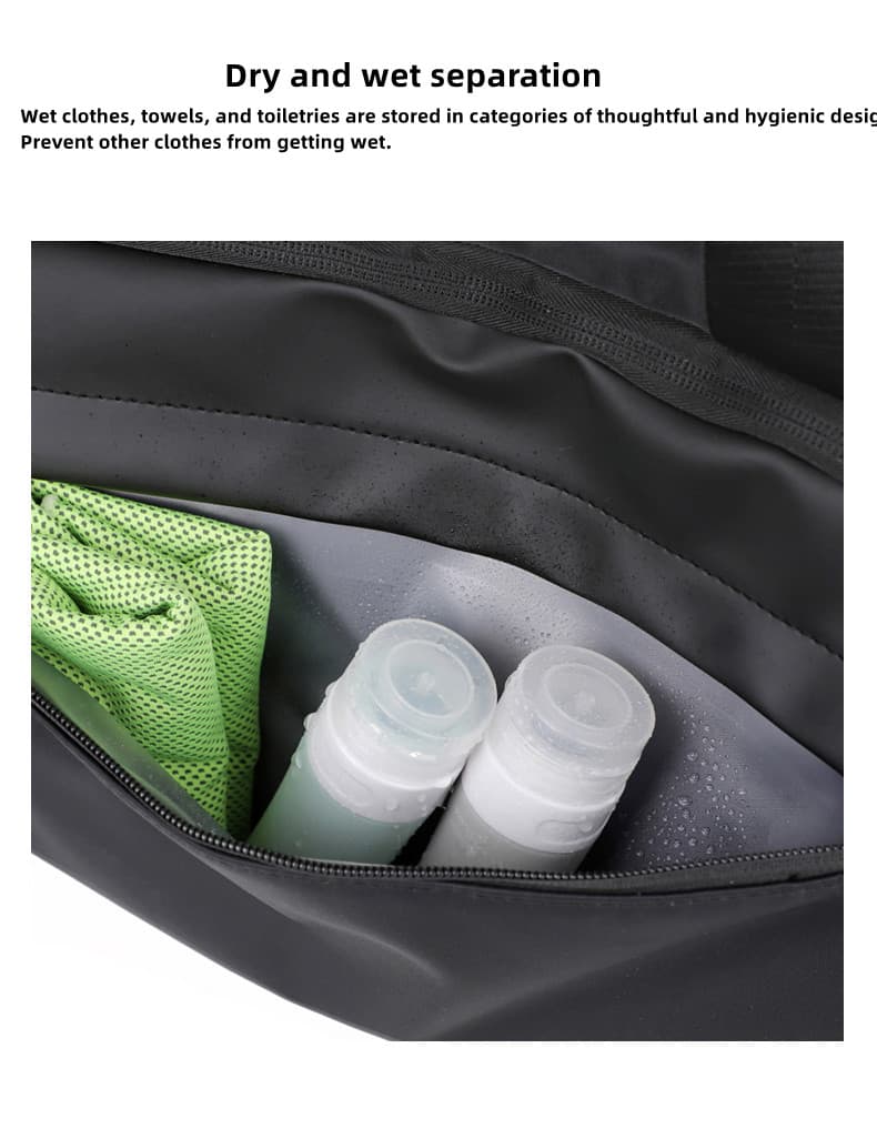 Made from water-repellent fabric, this duffel bag is smooth and soft, making it lightweight and breathable. Its excellent water-repellent performance can effectively resist moisture intrusion and protect the bag’s contents from getting wet. Equipped with wet and dry separation bags, it is convenient to sort wet clothes, towels, toiletries, etc., which is both considerate and hygienic. The large-capacity design makes storage more neat and orderly, avoids clutter, and accommodates various needed items quickly.