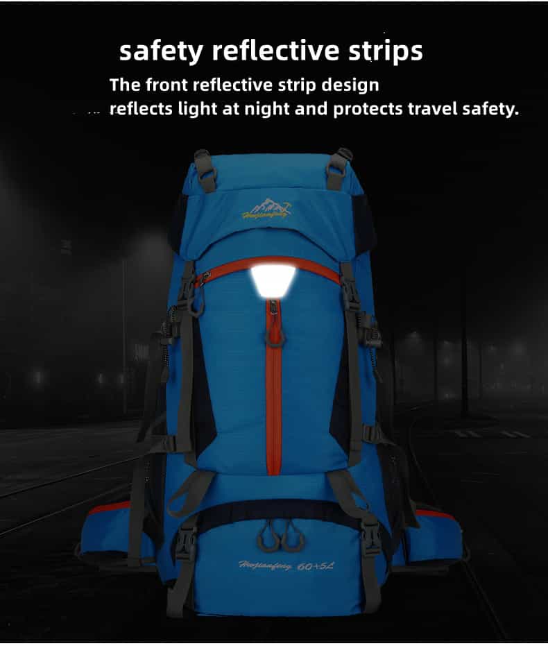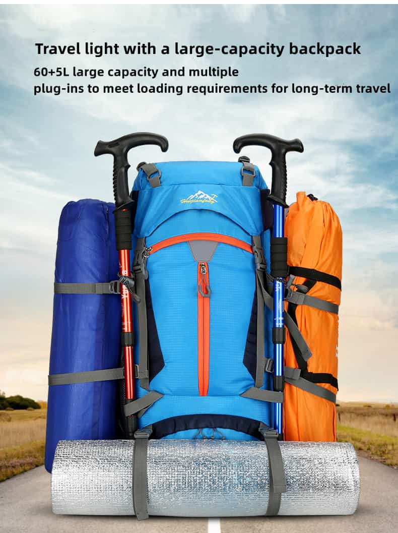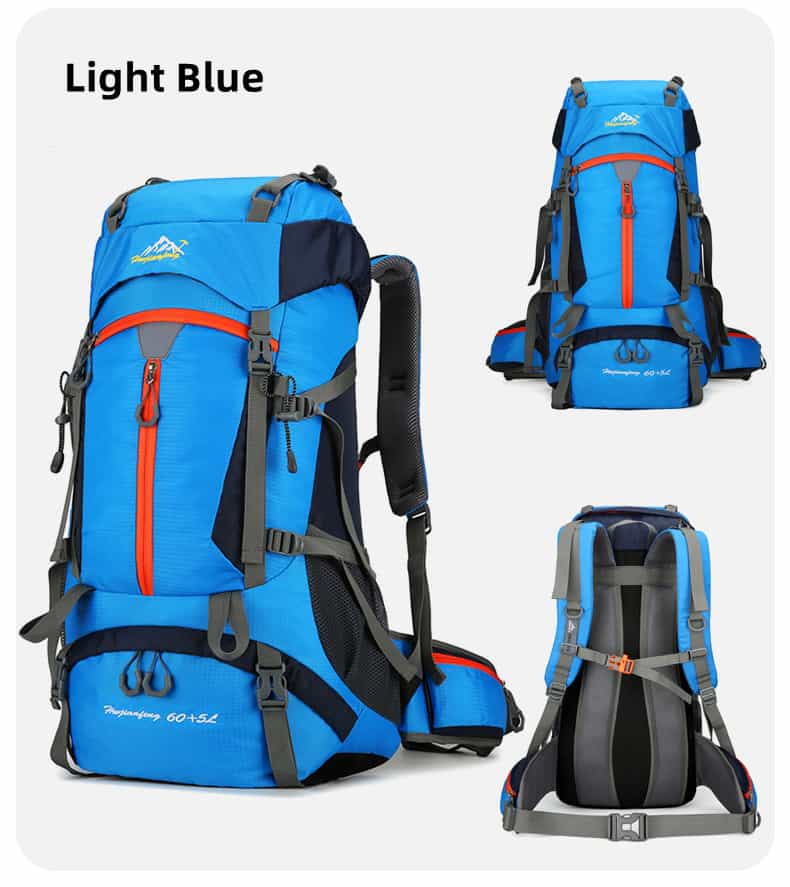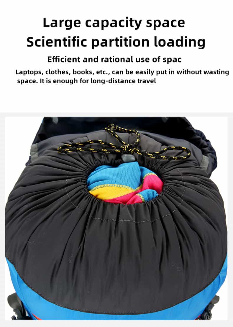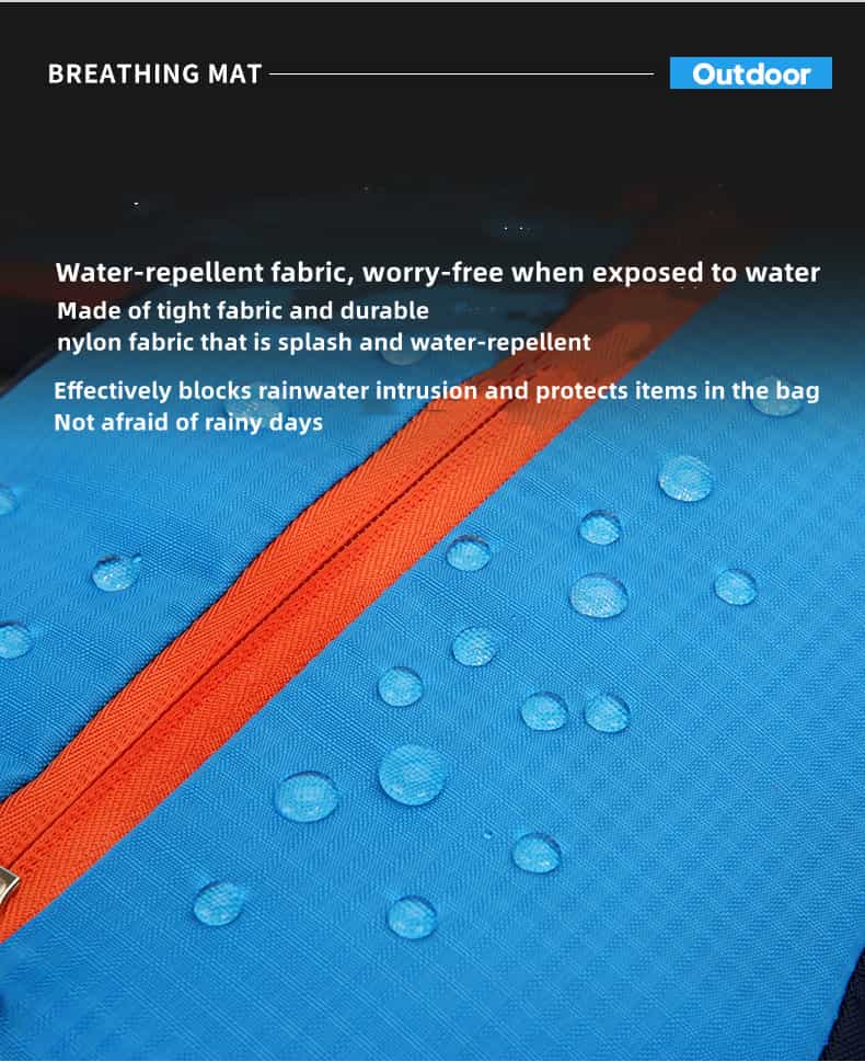 The hiking backpack is made of high-quality, waterproof, and tear-resistant nylon material and is supplied with durable, wear-resistant metal zippers. Breathable, sweat-wicking mesh shoulder straps with foam padding help relieve shoulder pressure.